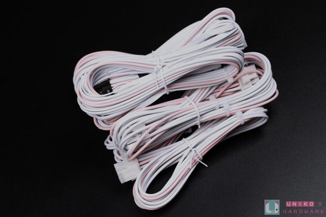 圓形壓花紋路編織而成。配色上除了 SATA / Molex 線材外,其餘都以粉色搭配白色呼應整