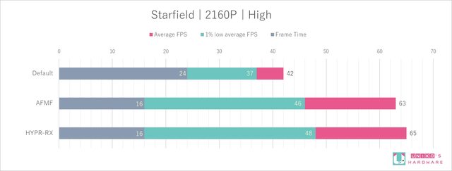 AFMF 效能提升了 50 %,因 Starfield 無法全螢幕直接指定解析度,所以 RSR 無法啟動