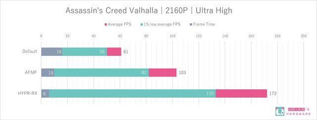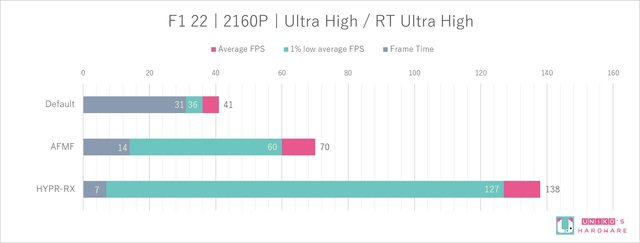 相比預設,開啟 AFMF 效能提升了 70.7 %,開啟 HYPR-RX 效能提升了 236.5 %。