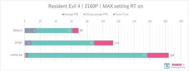 ,開啟 AFMF 效能提升了 63.7 %,開啟 HYPR-RX 效能提升了 166.6 %。