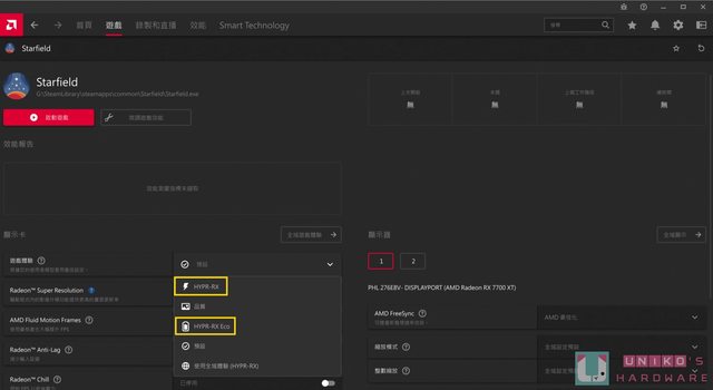 若要啟用完整 HYPR-RX 功能,需要使用者在遊戲內更改解析度才能啟動 RSR 功能,PJ 螢