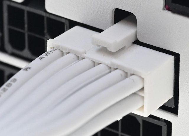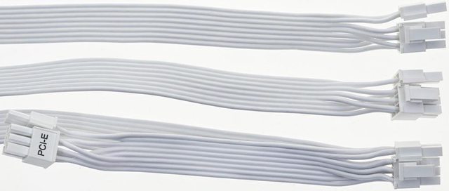 化輸出插座,使用白色帶狀線材搭配白色接頭。提供1個ATX 20+4P、2個EPS 4+4P、1個