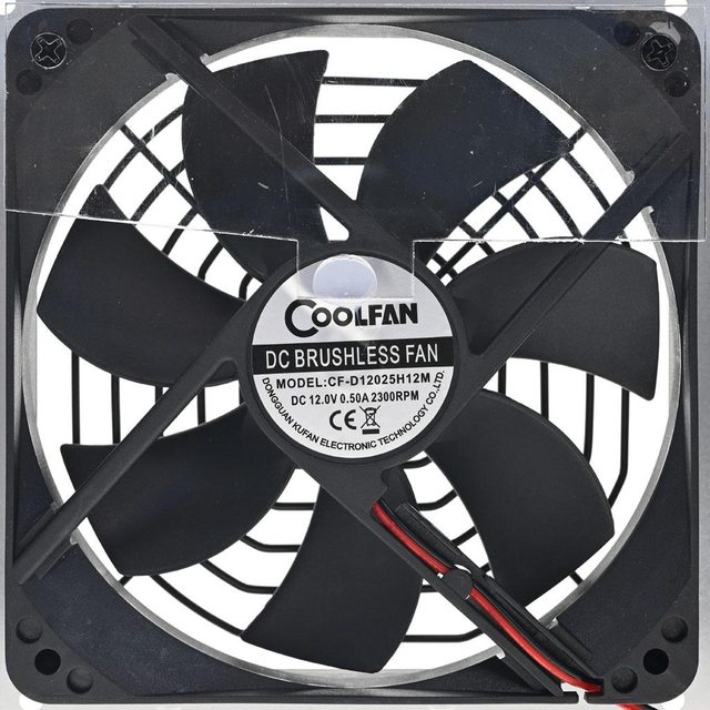 ▼採用Dongguan Kufan CF-D12025H12M 12公分12V/0.5A風扇,並設置氣流導風片