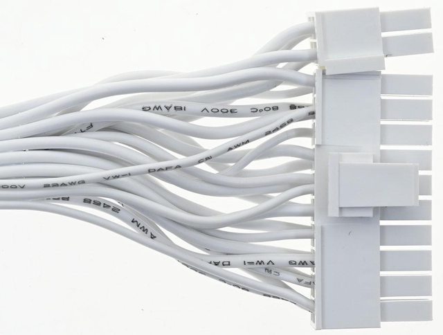 ▼1條主機板電源白色帶狀模組化線路,提供1個ATX 20+4P接頭,18/22AWG線路長度59公