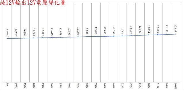 於綜合全負載輸出下12V/5V/3.3V各路低頻漣波分別為21.2mV/29.2mV/23.2mV;於純12V全
