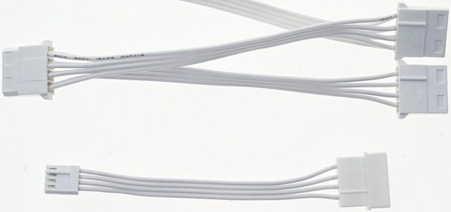 ▼1條大4P白色帶狀模組化線路,提供3個直式大4P接頭,至第一個接頭18AWG線路長度50