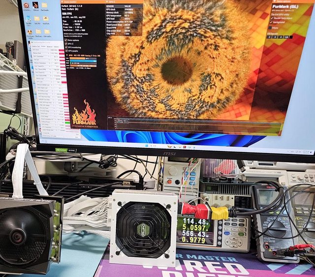 ▼用隨附的12VHPWR模組化線材連接MSI GEFORCE RTX 4090 GAMING X TRIO進行測試