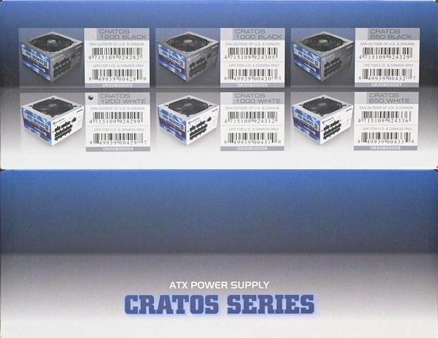 ▼此面外盒有黑色款及白色款850/1000/1200機種條碼及CRATOS系列名稱
