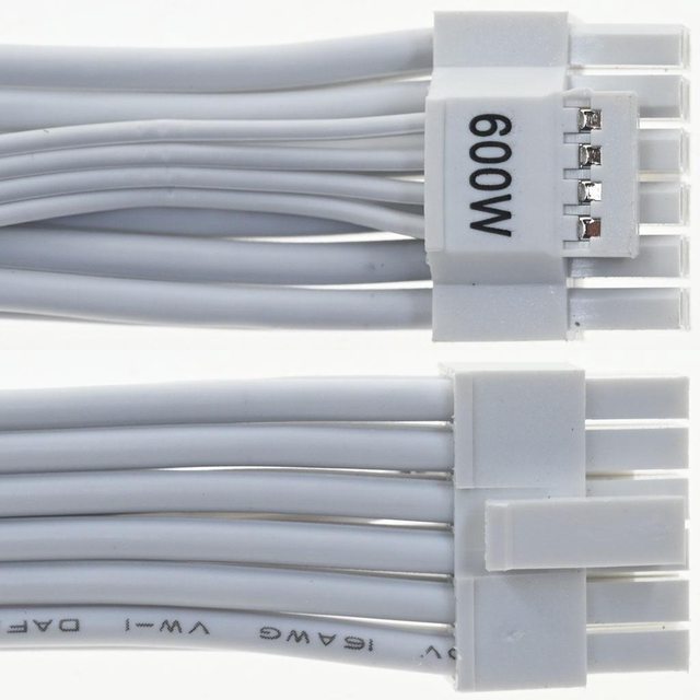 ▼1條12VHPWR白色帶狀模組化線路,接頭標示600W,16/26AWG線路長度60公分