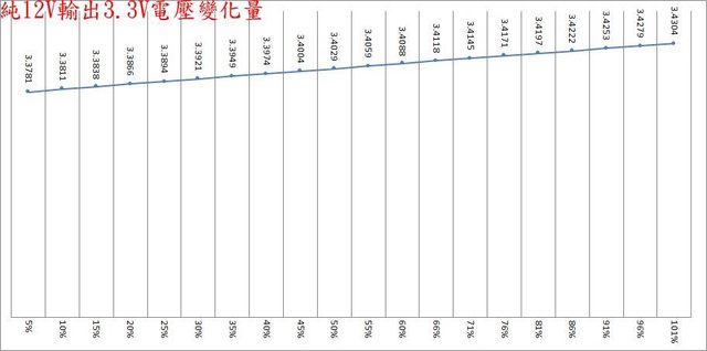 ○偏載測試,12V維持空載,測試3.3V滿載、5V滿載、3.3V/5V滿載的3.3V/5V/12V電壓變