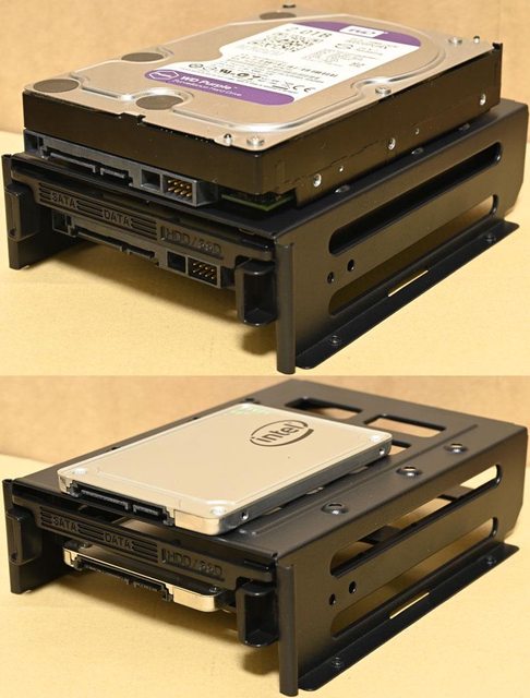 ▼底部3.5吋/2.5吋固定架安裝2個3.5吋裝置(上)或2個2.5吋裝置(下)示意圖