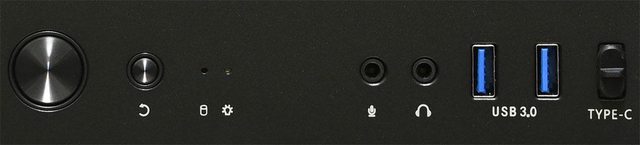 前置連接埠:2個USB3.2 Type-A、1個USB3.2 Type-C、耳機3.5mm插孔、麥克風3.5mm插孔