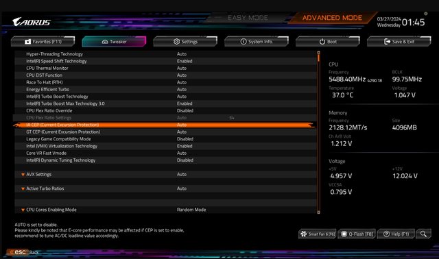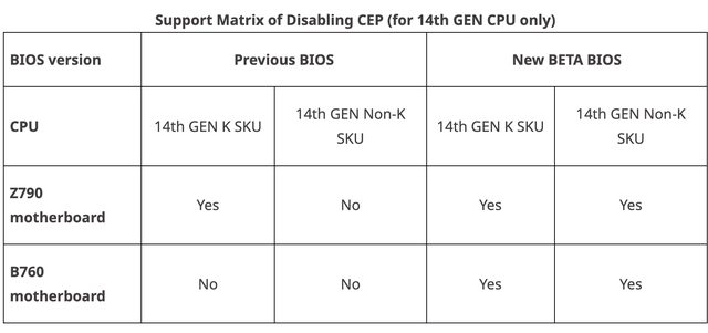 : ,反而犧牲了性能。新的測試版 BIOS 利用英特爾的微碼更新支持禁用 CEP 功能。