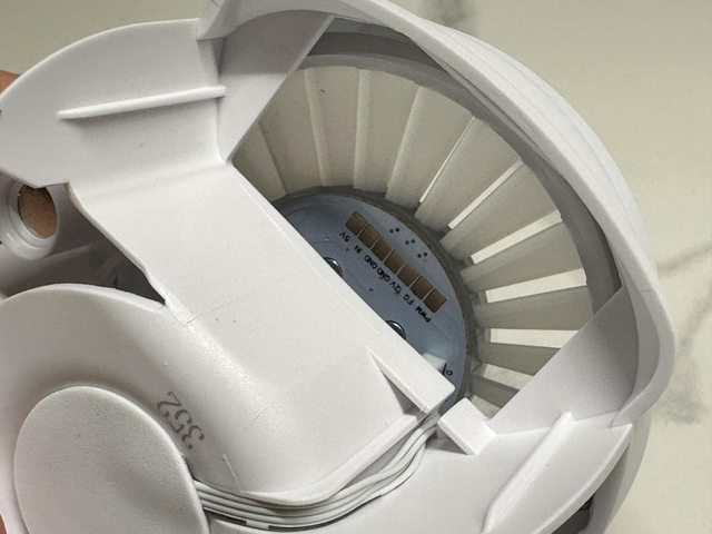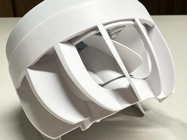 上蓋為一個直徑約為9cm的圓盤,正中間為AC LOGO,四周半透明扇葉狀的設計只有透出