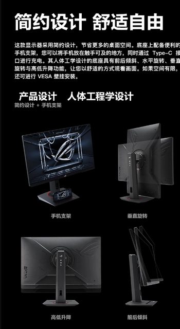可消除畫面重影與撕裂。ROG XG27UCS 絕神顯示器採用全新支架設計,占地面積更小