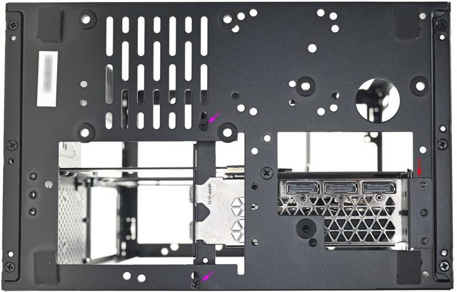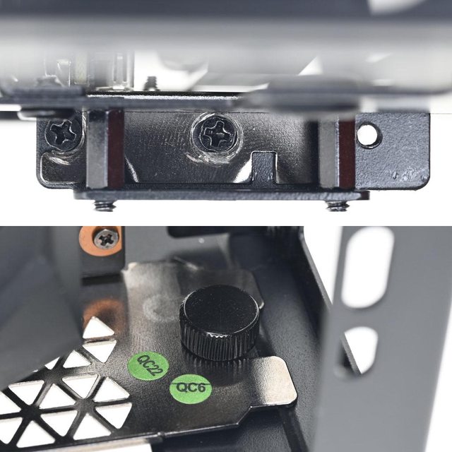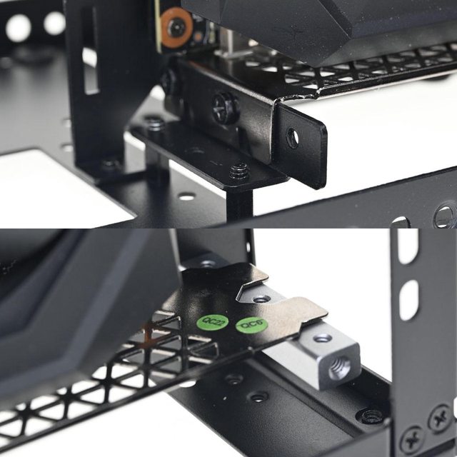 方垂直安裝位置,均使用6.5mm銀色銅柱。另一支延長線支架/底部托架安裝於機殼底部(