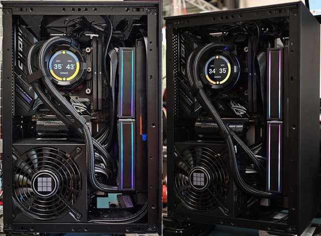 ▼安裝完成左側圖,需注意水冷管與主機板電源線整理