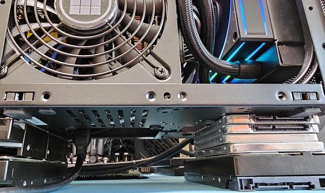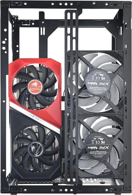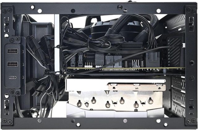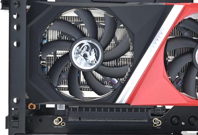 。搭配尺寸較大的顯示卡時,前方風扇及水冷排空間有限,只能選擇將前方風扇以抽風方
