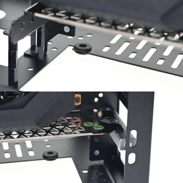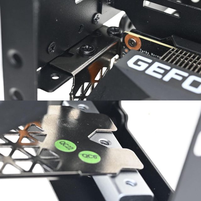 上10mm銅柱並鎖在外面,在底部托架加上5mm銅柱。需特別注意,顯示卡前方垂直安裝配