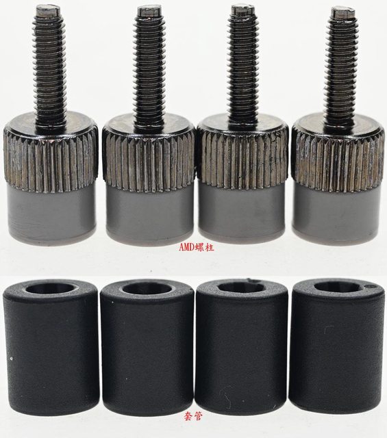 ▼AMD螺柱其中一端有灰色圓筒,安裝時灰色圓筒那一端朝向主機板。黑色圓柱外觀的套