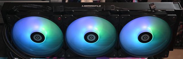 ●3個140mm風壓最佳化高性能PWM發光風扇,可帶動更多氣流穿過水冷排鰭片,有效降低