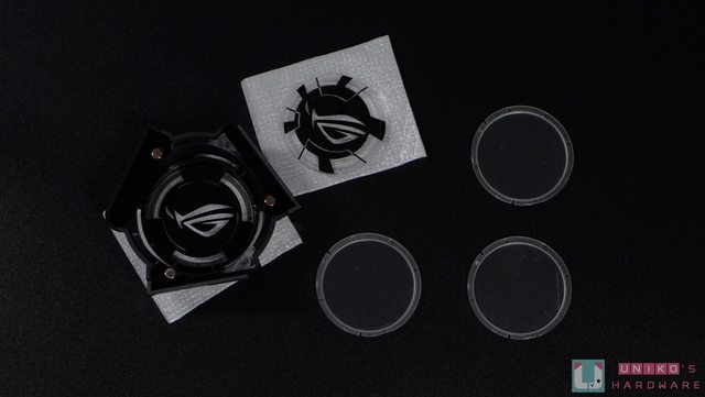 x 100mm,ROG 透光罩 (預設已經安裝一個,還有另外提供一個 ROG 的,以及三個透明的供