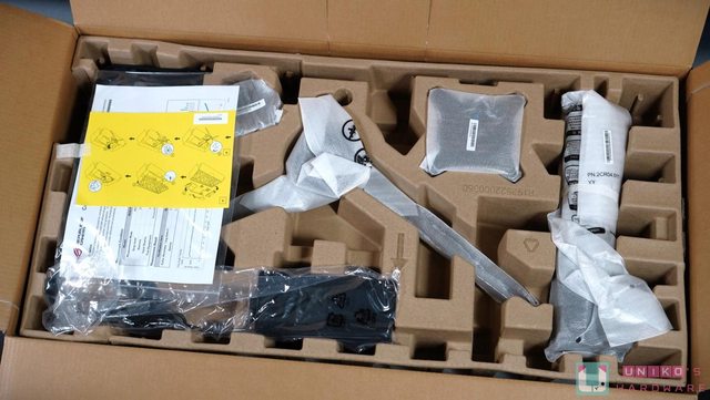 包裝內有顯示器本體、三腳底座、支撐臂、VESA mount kit (懸臂或是壁掛連接套件) 100