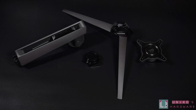 支撐臂底下有透光設計,可以透過 AURA SYNC 控制,另外也有壁掛或是懸臂用套件,ROG R