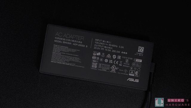 電源線使用跟 PSU 相同接頭,變壓器型號 ADP-280EB,輸入 100 – 240V ~ 50-60Hz / 3.