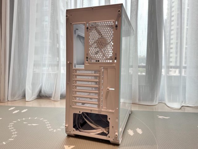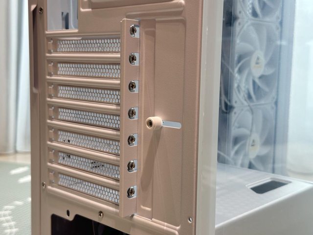 後方排風扇為12cm規格,PCIE槽位為7個,左右側板則採用手轉螺絲固定。