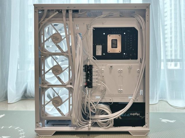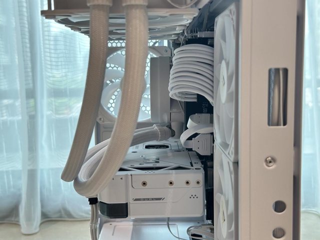 線材集中在前方,主機板24P線材如果不是訂製線可能走線會稍微卡卡。
