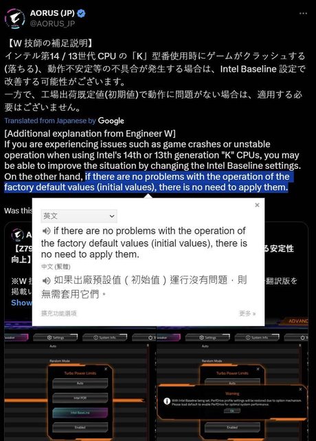 遇上 13/14TH CPU 穩定性問題,這兩家是建議使用者自行在 BIOS 裡打開 INTEL BASELINE