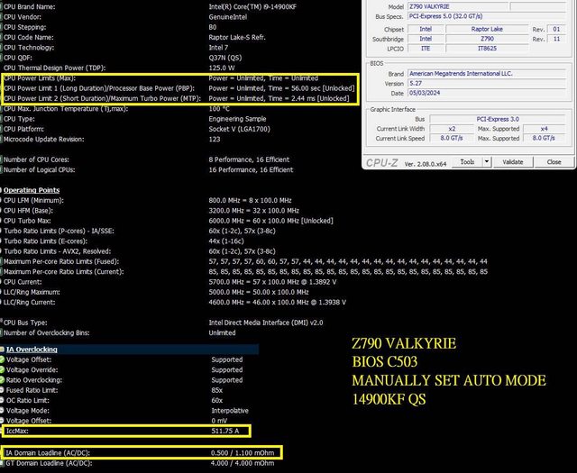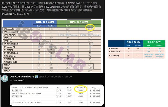 ,提及且相信 RPL-S 125W (13900K / 13900KF) 的 BASELINE ICCMAX 就是 200A,當時引
