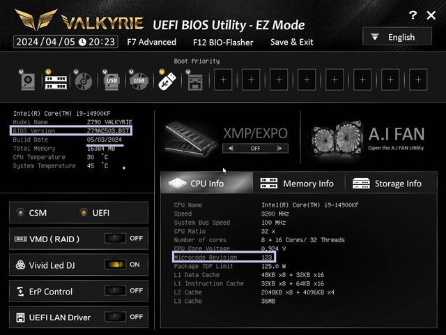 再確認,這一版 BIOS 也把 INTEL CPU MICROCODE 更新至 0X123 版本。