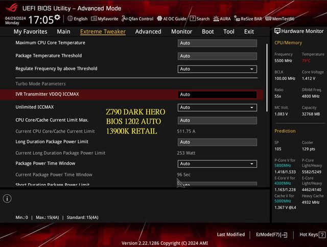 關資訊,除了 Z790 DARK HERO 的 ICCMAX (IA TDC CURRENT LIMIT) 只能在 BIOS 裡看。
