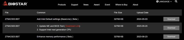 在映泰 Z790 VALKYRIE 的官網,供下載的最新 BIOS 是 Z79AC503.BST,類型為 BETA BIOS