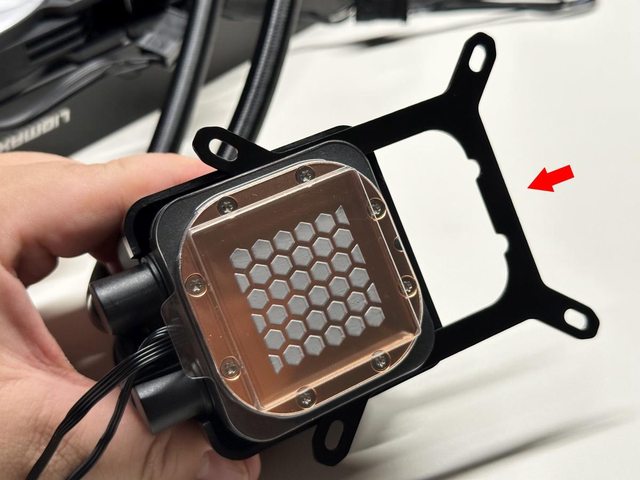 裝方向調整,讓LOGO字樣保持正向,也別忘了使用前先將水冷頭側邊保護膜拆除。
