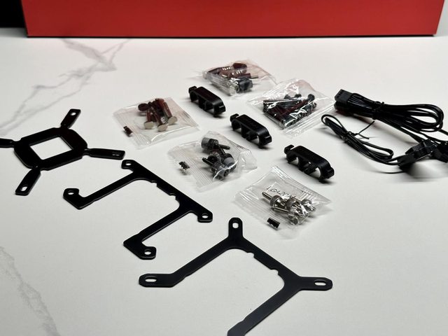 扣具一覽,各扣具螺絲採用一次性包裝,兩陣營各有搭配的金屬材質水冷頭扣具,INTEL