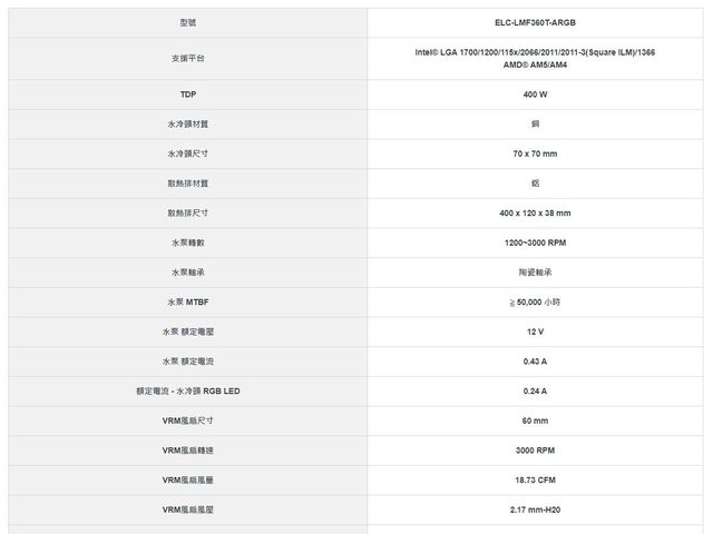 包裝背面為特色及硬體規格標示,照慣例擷取官網表格供參,風扇規格以紅色框體標示。