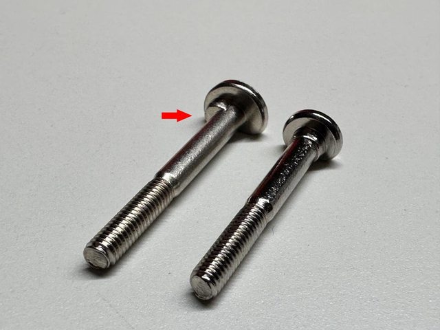 LGA1700搭配的螺絲底部半圓比較大、螺絲整體長度較長且底部還有一個額外突起,可依