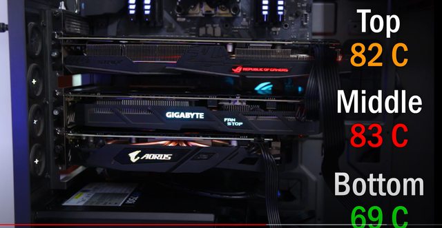 軸流扇的缺點就是,當你的兩張卡貼太近,有被擋住的那張卡溫度就會爆炸