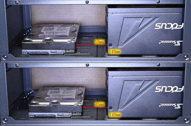 電源供應器左側與3.5吋裝置右側邊緣距離最小46mm,最大59mm