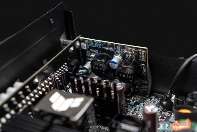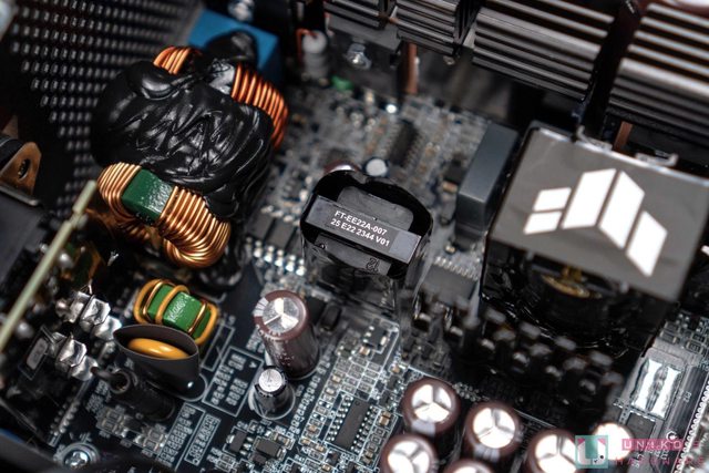 內部採用高效、低 ESR 日製電容,提供 92% 轉換效率。其中的主要變壓器有放上 TUF Gam
