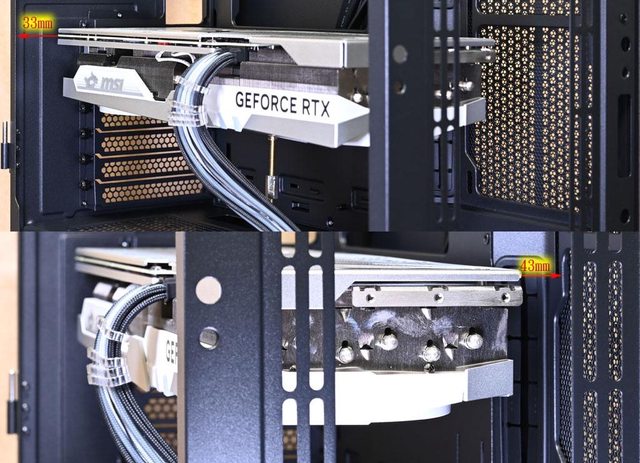 部距離左側33mm,顯示卡底部距離右側風扇架43mm