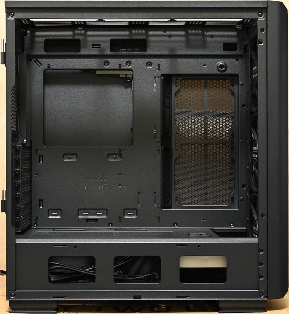 ▼機殼左側配置圖,主機板/介面卡安裝區與電源艙採隔離設計。底板上方/中間/前端/右