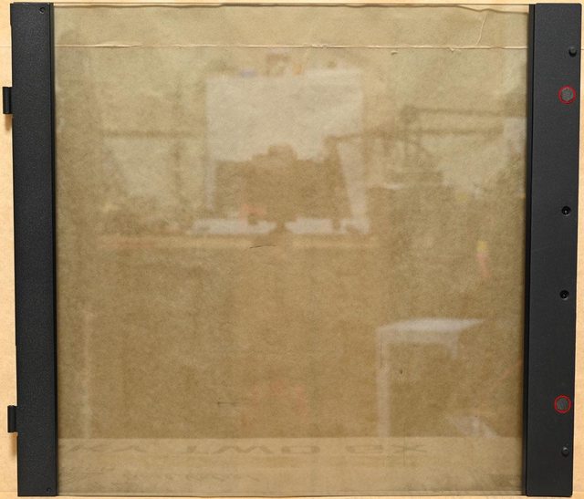 ▼強化玻璃背面左右兩側邊緣配置金屬條,其中一邊有2個磁吸固定磁鐵(紅色框)