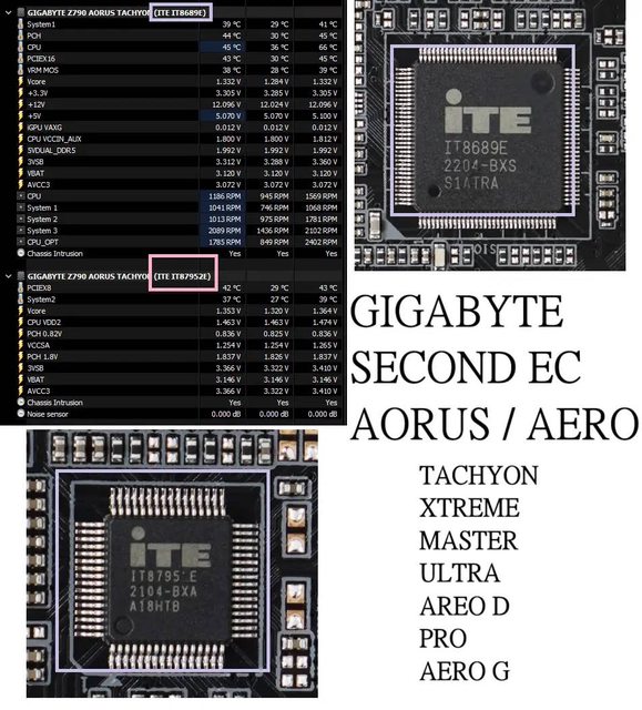 ‧ 高階主機板例如 Z790 AORUS MASTER,同時使用 ITE IT5701E 和 ITE IT5702。