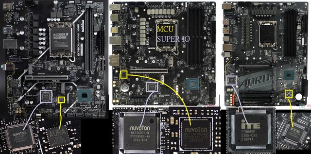 華碩和微星愛用 NUVOTON 家的方案 (型號不同),技嘉鍾情 ITE。這種晶片比 SUPER I/O