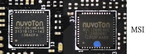 ‧ 微星的 NUVOTON NUC126NE4AE / NUC1261NE4AE。(126 常見於舊的板子,1261 則出現
