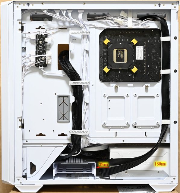 ▼安裝完成右側配置圖,安裝長度180mm的COUGAR POLAR X2電源供應器時,底部3.5吋